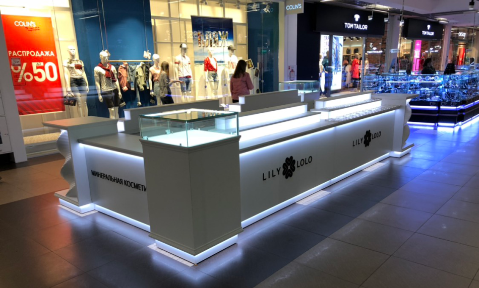 Мы применяем элементы освещения для широкого ассортимента торгового оборудования, среди которого:
