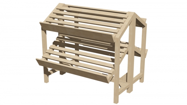 Деревянный стеллаж для фруктов и овощей изготовлен из высококачественных пиломатериалов. В качестве стоечных опор используется цельный брус, обеспечивающий высокие несущие характеристики. Для каркаса применяются пиломатериалы прошедшие технологическую обработку на станке рейсмусе, что позволяет добиться идеальной ровности и гладкости поверхности бруса. Также применяются рейки и фигурные элементы из мебельного щита для организации полок и декора. Для сборки используется металлический крепеж, отсутствуют клеевые соединения с применением продуктов нефтехимии материалов. Для окраски стеллажей используются качественные нетоксичные краски.