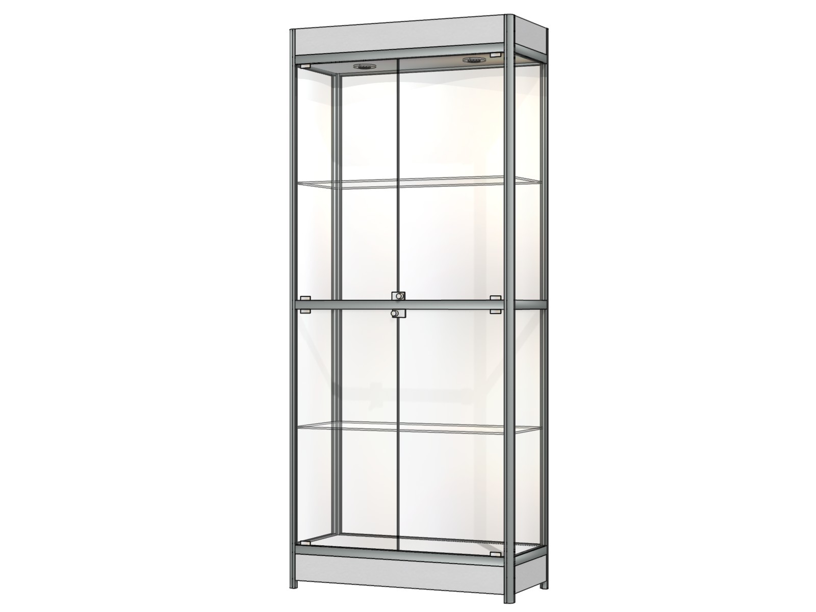 Особенности: Цвет – Серый пепел. Боковое остекление – стекло 4 мм. Двери – стекло 5 мм. Полки – стекло 6 мм. С подсветкой двумя лампами накаливания мощностью по 40 Вт.