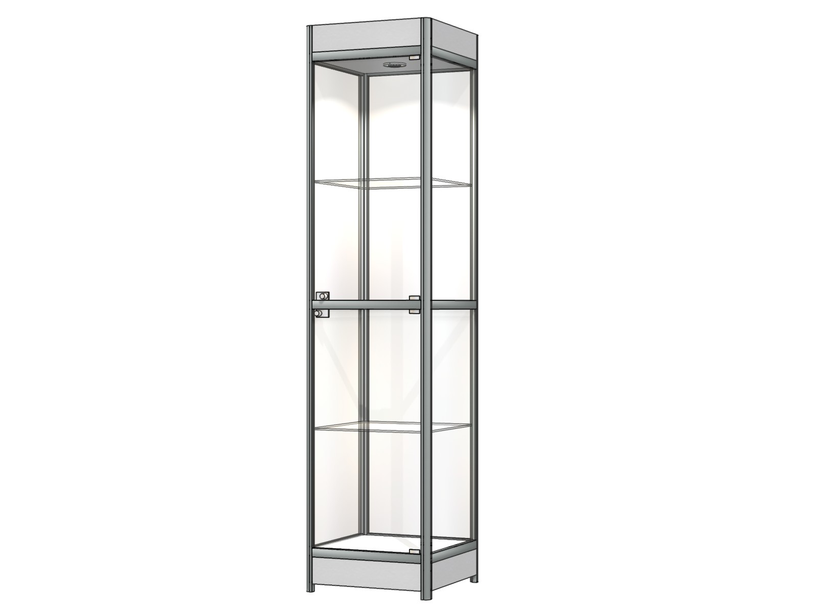 Модель легкая, удобная в эксплуатации, выполнена из качественных материалов. Используется стекло, алюминий и ламинированное МДФ. По желанию клиента можно усовершенствовать витрину, добавив туда освещение. Это особенно актуально для магазинов, продающих украшения, так как важно продемонстрировать покупателю их блеск. Данный тип полок отлично подходит для телефонов, любой мелкой электроники и бытовой техники, часто подобные конструкции встречаются в аптеках и зоомагазинах.