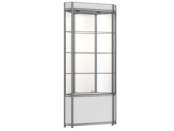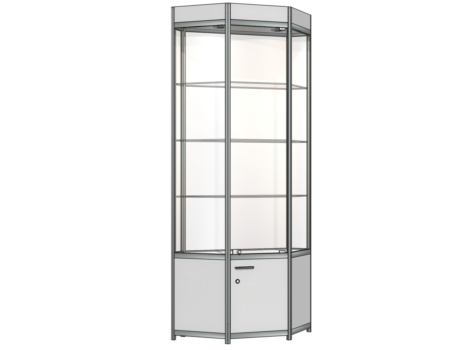 Материал: Материал: Алюминиевый профиль системы «Euroshop». ДСП ламинированная, толщиной 18 мм. Цвет – Серый пепел. Боковое остекление – стекло 4 мм. Двери – стекло 5 мм. Полки – стекло 6 мм.