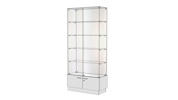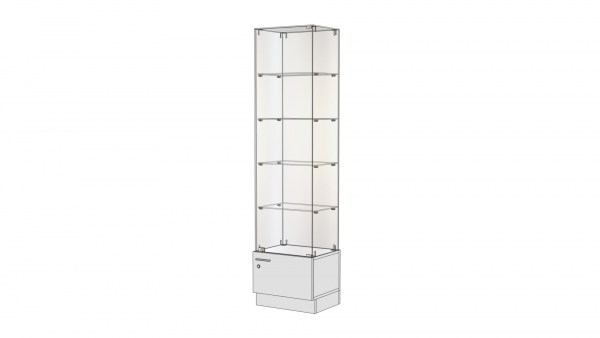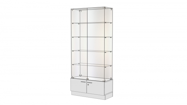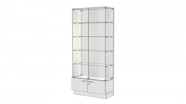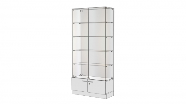 Глухие элементы полностью исключены, что обеспечивает не только визуальную легкость конструкции, но и максимальную обзорность товаров. Боковые стенки также стеклянные, что выгодно отличает данную серию от аналогов, имеющих непрозрачные алюминиевые стенки или компоненты, выполненные из ДСП. Крепежные элементы незаметны, они небольшого размера, расположены так, чтобы не бросаться в глаза. Конструкция кажется словно зависшей в воздухе. Такая мебель отлично подойдет для создания торговых островов.