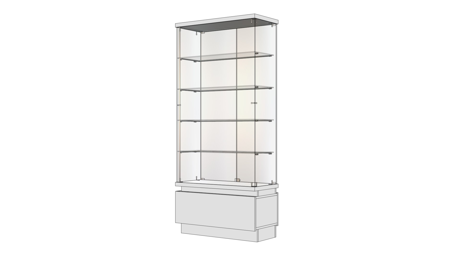 Материал: ДСП ламинированная, толщиной 18 мм. Цвет – Белый Альпийский. Задняя стенка, боковое остекление – стекло 6 мм. Двери – стекло 5 мм. Полки – стекло 6 мм. С 5-ю уровнями подсветки и декоративной подсветкой карниза и цоколя спереди, сбоку и сзади, светодиодной лентой класса LUX мощностью 11 Вт/м, в алюминиевом профиле с рассеивателем