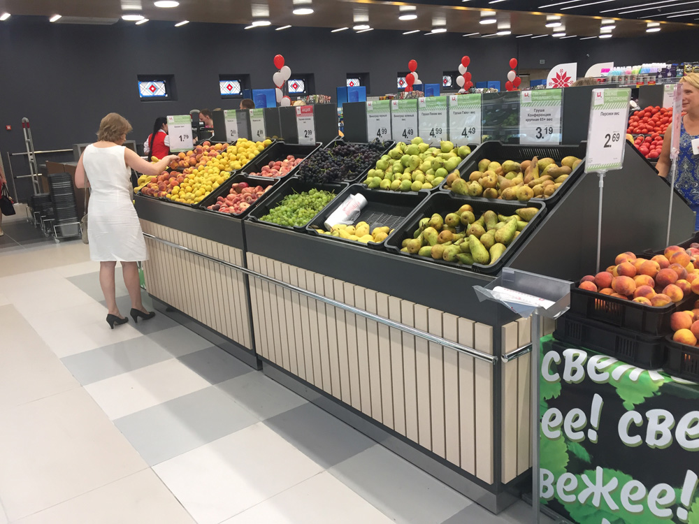 Специфика супермаркета в продаже широкого ассортимента товаров, от продуктов питания, до моющих средств и бытовой химии, от овощей, фруктов до мясной продукции, детских игрушек и других товаров. Поэтому, торговое оборудование для супермаркета должно соответствовать специфике его работ, разделять возможности и торговый ассортимент каждого раздела. Учитывая ежедневную работу и постоянную загруженность товарами, оборудование должно быть изготовлено из качественных, долговечных и надежных материалов.