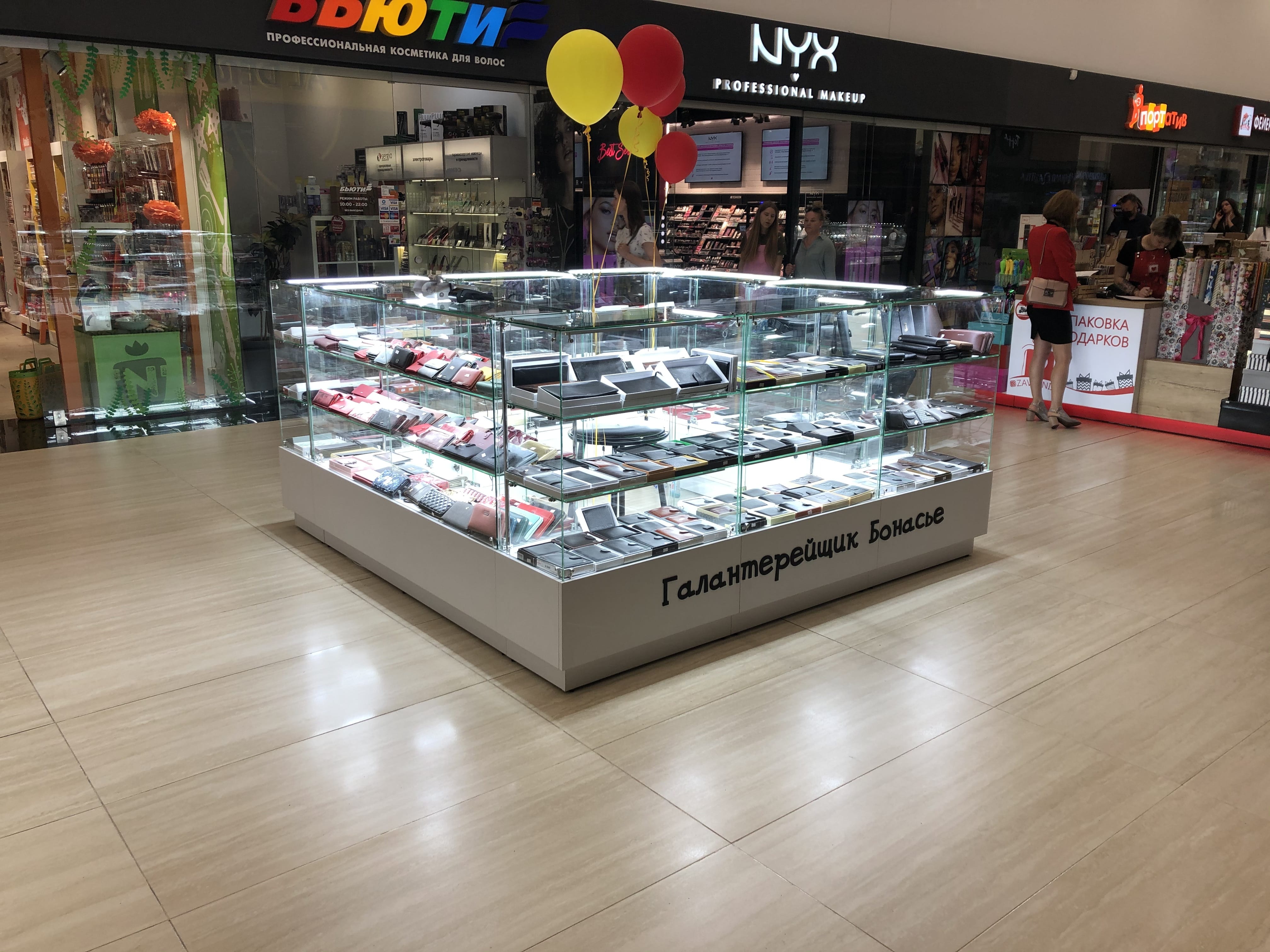 Островок простой формы для продажи товаров галантереи. Расположен в ТЦ "Грин Сити".